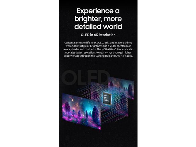 - OLED Glare-free technology significantly reduces glare, and the Dynamic Black Equalizer analyzes and adjusts sharpness, saturation, and black details.