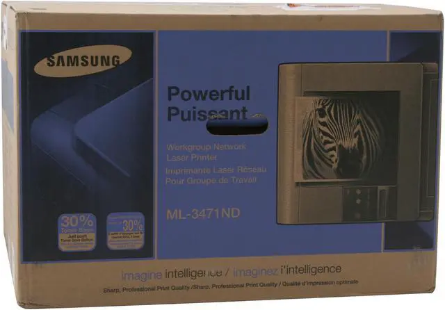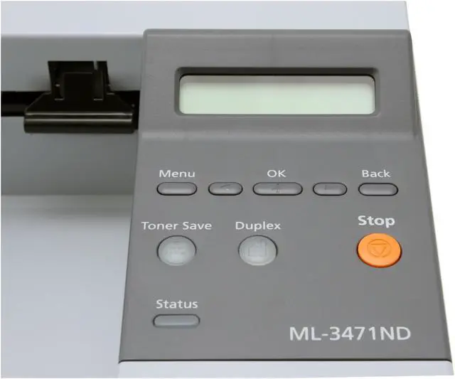 Samsung makes monochrome laser printing easy with the all-in-one ML-3471ND printer. The trim footprint of the ML-3471ND makes it a great choice for offices where space is tight; this scanner, fax, copier, and printer perches easily on a corner of your desk or on your book case. Your print jobs run at 35 ppm, and thanks to the ML-3471ND's 1200 dpi print resolution, they'll be crisp and sharp-looking!