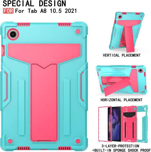 Galaxy Tab A8 10.5 Inch Case with Kickstand, Dual Layer Hybrid Shockproof Rugged Cover Protective Case for Samsung Galaxy A8 Tablet 10.5 Inch (SM-X200 / SM-X205 / SM-X207) (Teal/Pink)