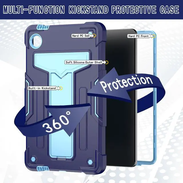 Our full body protective cover case is specifically designed for the Samsung Galaxy Tab A9 8.7" Inch Tablet 2023 Released. It is made of high-quality materials, which provide excellent protection for your tablet from drops, bumps, scratches, and other damages. The case features a built-in kickstand that can be open up for easy viewing or typing. The case also has a precision cutout for the camera lens, ensuring that your tablet's camera is fully protected. The case is easy to install and remove and is compatible with the Samsung Galaxy Tab A9 (SM-X110/SM-X115/SM-X117).