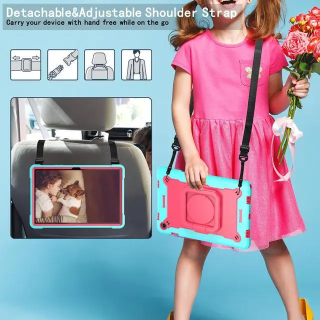 With Adjustable Shoulder Strap Adjustable shoulder grip can be slanted and release your hands completely. This function is used for traveling, restaurant ordering, home product introduction, engineer outdoor operation, teacher, etc. And even hang it on your car seat for entertainment for kids.