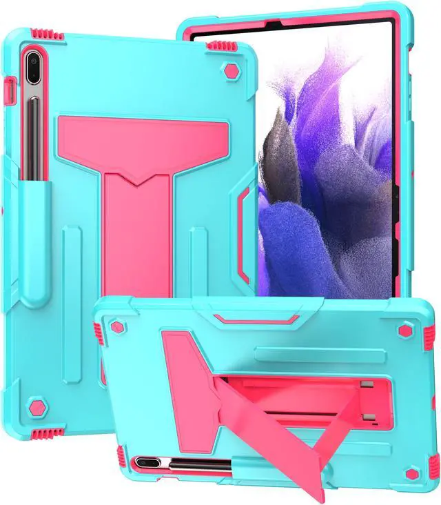 Epicgadget Case for Samsung Galaxy Tab S7 Plus 12.4 2020 (SM-T970 / SM-T975 / SM-T976) - Dual Layer Protective Hybrid Cover Case With Kickstand For Galaxy Tab S7+ 12.4 inch Tablet (Teal/Pink)