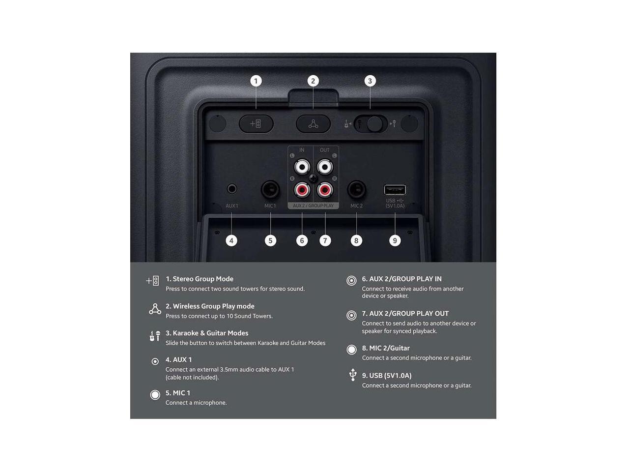 Samsung MX-ST50F 240W Sound Tower Portable Party Speaker with Built-in Battery & Wheels - Black