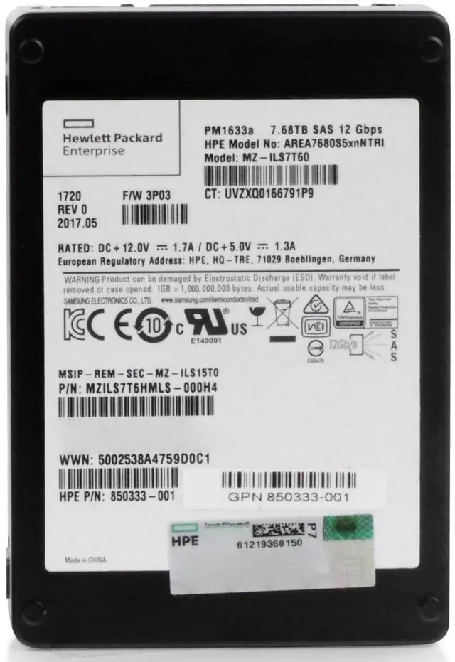 Samsung MZ-ILS7T60 SAS 12Gb/s 2.5" MZILS7T6HMLS-000C3 PM1633a 512 b/s