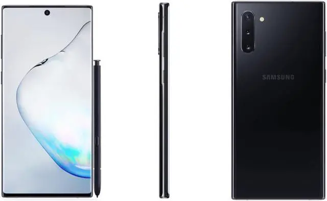 The Galaxy Note 10+ is Samsungs flagship device. Its equipped with the Snapdragon 855 chip (Exynos 9825 in the international version), a whopping 12GB of RAM, as well as either 256 or 512GB of storage with microSD card support. The phone supports ultra-fast 45W wired charging and 20W wireless charging of its large 4,300mAh battery. It has a quad-camera - aside from a 12MP main, 12MP telephoto, and a 16MP wide-angle camera, the phone also has a ToF sensor for range imaging. The phone is available in Aura Black, Aura White, Aura Glow, and the exclusive Aura Blue.