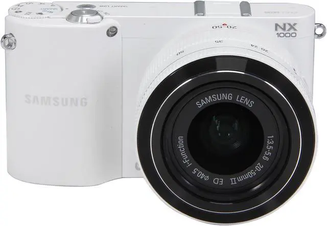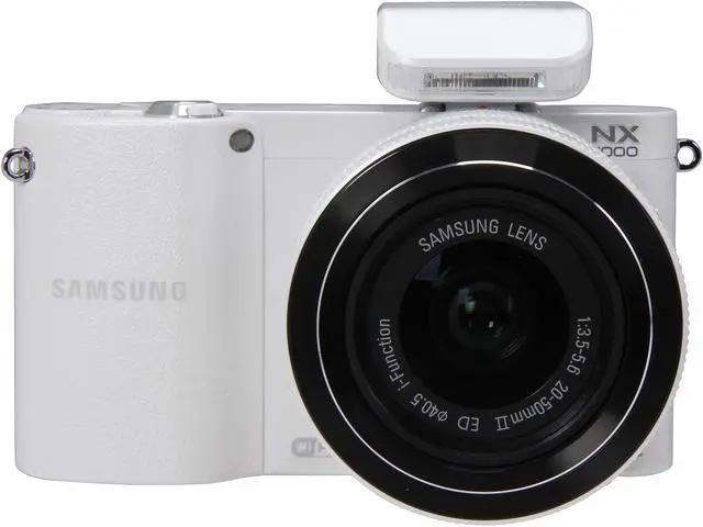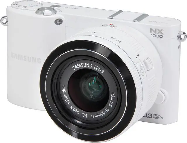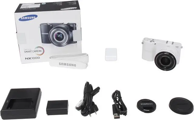 NX1000 20.3 SMART Camera (White) 20-50mm F/3.5-5.6 ED Lens (White) SEF-8A Hot Shoe Mount Flash Unit BP1030 Lithium-ion Battery BC1030 Battery Charger & AC Cable Body Cap Camera Strap Micro USB Cable