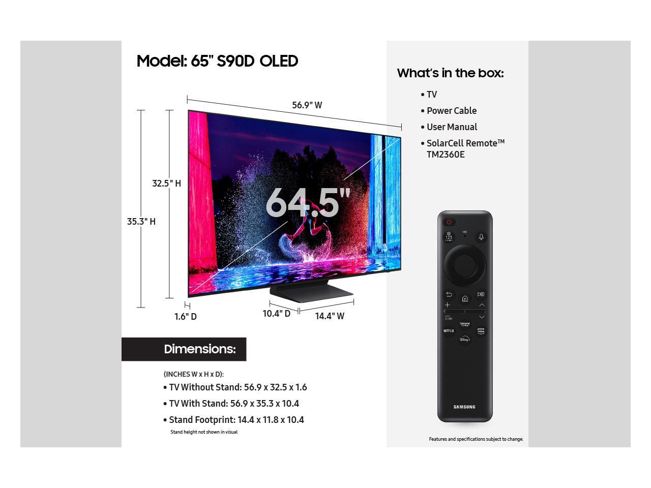 Samsung OLED S90D 65" Class OLED Tizen Smart TV (QN65S90DAFXZA, 2024)