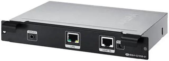 Samsung PIM-HDBT is a HD Base-T receiver module used for significantly simpler LFD installations. This receiver delivers uncompressed HD video, audio, Ethernet and control signals by enabling all-in-one connectivity between HD video sources and remote displays through a single cable.