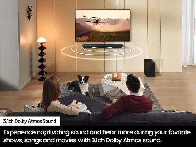 Samsung QN32Q60CAFXZA 32" QLED 4K Smart TV - Mega Contrast - Quantum HDR - Quantum Processor Lite with 4K Upscaling - 100 Percent Color Volume with Quantum Dot - Supreme UHD Dimming - ALLM - AirSlim Design - Slim Feet - Smart - Tizen - Universal Guide - Multiple Voice Assistants - Samsung TV Plus - Multi View - SolarCell Remote - SmartThings Compatible - Samsung Health - Google Meet - Telemedicine - ConnecTime - Gaming Hub - 3 HDMI - VRR - eARC - 2 USB - LAN - Wi-Fi - Bluetooth - RS232C - IP Control Support - Optical - Object Tracking SoundLite - Symphony - 20W 2ch Speakers - Filmmaker Mode - VESA 100 x 100 - ( 28.60"W x 6.10"D x 18.80"H ) - (Titan Gray) with a Samsung HW-Q60C Soundbar and Subwoofer - 3.1 Channels - 7 Speakers - 340W - Center Speaker - Dolby TrueHD - Dolby Digital Plus - Dolby MAT - DTS 5.1 ch - DTS Virtual: X - Voice Enhance - Night Mode - Auto AV Sync - Surround Sound Expansion - Q-Symphony - Dolby Atmos - Adaptive Sound Lite - Game Mode - LPCM - Tap Sound - One Remote - 4K Video Pass - HDR 10 Plus - Bluetooth Multi Connection - 1x HDMI In - 1x HDMI Out - USB - Optical In - eARC/CEC - Auto Power Link - Multiple AV Decoding Formats - Compatible with SWA-9200S - Energy Star - Accessories Include HDMI Cable, Wall Mount Kit, Power Adapter, Remote Control with Battery - Subwoofer: ( 7.20"W x 11.60"D x 13.50"H ) - Soundbar: ( 40.60"W x 4.10"D x 2.20"H ) - (Titan Black)