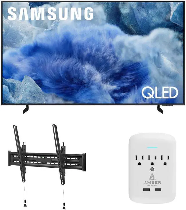 This bundle includes: (1) Samsung Q8F 4K Smart TV with (1) Walts TV Wall Mount and (1) Amber Protection 3-OUTLET-SURGE Surge Protector.