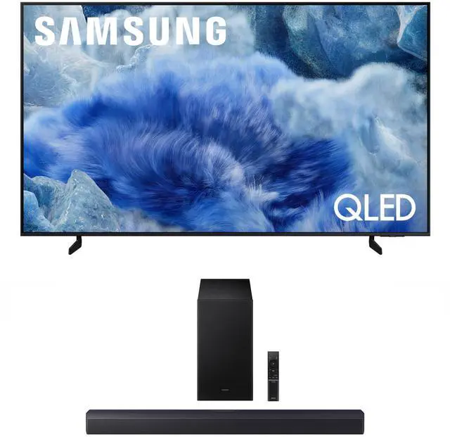 This bundle includes: (1) Samsung Q8F TV with your choice of a Samsung Soundbar and Amber Screen Cleaner