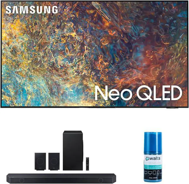 Samsung QN98QN90AA Neo QLED 4K Smart TV - Neo Quantum Processor 4K - HDR 10+ Certified - Quantum Matrix Contrast - 3840 x 2160 Resolution - Motion Rate 240 - Ultra Viewing Angle - Contrast Enhancer - Auto Motion Plus - LED Clear Motion - Dolby Digital Plus - Dolby 5.1 Decoder - Object Tracking Sound - Q-Symphony - Dialog Enhancement - 60W Sound Output - 4.2. 2 Channel Speakers - Woofer - Multiroom Link - Bluetooth Audio - Tizen Smart Service Operating System - Web Browser - Voice Activated Assistant - 600 x 400 VESA - TV to Mobile Mirroring - Mobile to TV Mirroring - Auto Game Mode - Game Motion Plus - Super Ultra Wide Game View - Wifi - Bluetooth - Adaptive Picture - Active Voice Amplifier - Adaptive Sound Plus - AI Upscale - Brightness/Color Detection - Office 365 Cloud Service - English, Spanish, and French OSD Language - 4 HDMI - 2 USB ( 2.0 ) - Optical - RS-232C - Ethernet - ARC - eARC - HDMI Quick Switch - 4 Bezel-Less - Solid Slim - Bending Plate Stand (Sand Black) - Eco Sensor - Solar Cell Remote - ( 86.00"W x 14.40"D x 51.90"H ) - (Titan Black) with a Samsung HW-Q990C Wireless Soundbar with Rear Speakers - 11.1. 4 Channels - 22 Speakers - 656W Total - Center Speaker - Up-Firing Speaker - Side-Firing Speaker - Front Wide-Firing Speaker - Rear Speakers - Wireless Subwoofer - Q-Symphony - Far-Field Voice Expansion for TV - Wide Range Tweeter - Dolby Atmos - Dolby TrueHD - Dolby Digital Plus - Dolby MAT - DTS: X - DTS-HD HRA - DTS-HD MA - DTS Express - DTS 5.1 ch - Surround Sound Expansion - Game Pro Mode - Adaptive Mode - Active Voice Amplifier - Auto AV Sync - Night Mode - Voice Enhance - SpaceFit Sound Pro - Hi-Res Audio Decoding - LPCM Multi Channel - 4K Video Pass - HDR10 Plus - Multiple AV Decoding Formats - Wi-Fi - 2x HDMI In - 1x HDMI Out - Bluetooth - Optical In - CEC/eARC - Auto Power Link - One Remote Control - SmartThings App Compatible - Multiple Streaming Platforms - Tap Sound - Shop Mode - Voice Assistant Compatible - Accessories Include Remote Control and Batteries, Wall Mount Kit, HDMI Cable, Rubber Foot - Rear Speakers: ( 5.10"W x 5.50"D x 7.90"H ) - Subwoofer: ( 8.70"W x 16.10"D x 16.30"H ) - Soundbar: ( 48.50"W x 5.40"D x 2.70"H ) - (Titan Black) and a Walts HDTV Screen Cleaner - 200ml Liquid Spray - 6.8 oz Screen Cleaner - Includes 200 x 200mm Polar Fleece Cloth - (9"W x 3"D x 5"H) - (Black)