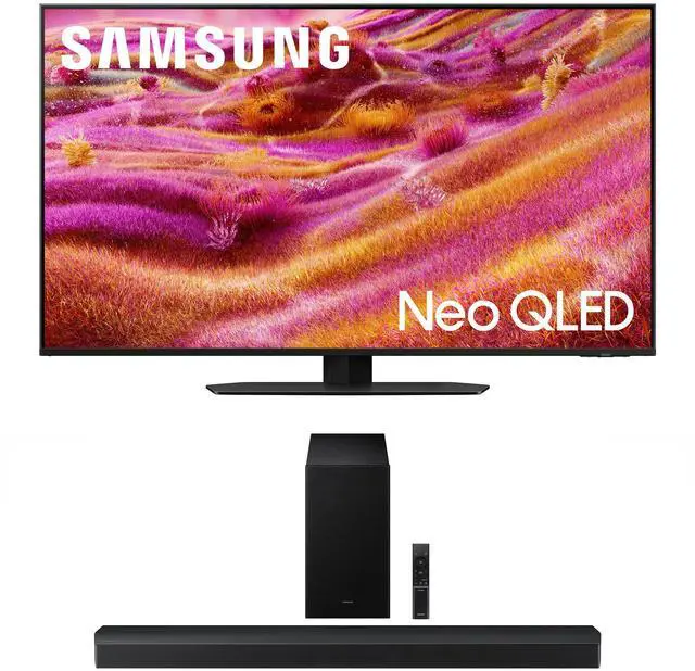 This bundle includes: (1) Samsung QN90FA 4K Neo Quantum HDR TV with your choice of a Samsung Soundbar and Amber Screen Cleaner