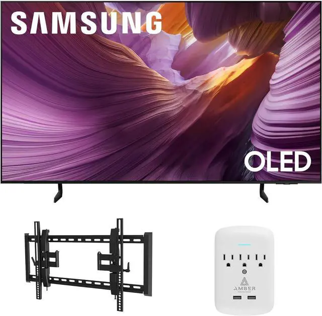 This bundle includes: (1) Samsung S85F 4K Smart TV with (1) Walts TV Wall Mount and (1) Amber Protection 3-OUTLET-SURGE Surge Protector.