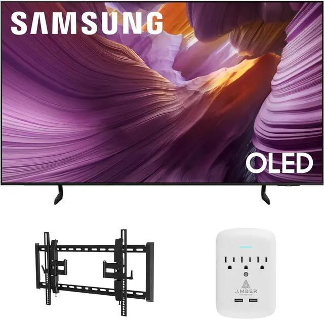 Samsung QN83S85FAEXZA 83 Inch OLED HDR 4K Smart TV with a Walts TV TILT-EXTENSION-37-90 Tilt Mount for 37"-90" TVs and Amber Protection 3-OUTLET-SURGE Surge Protector (2025)