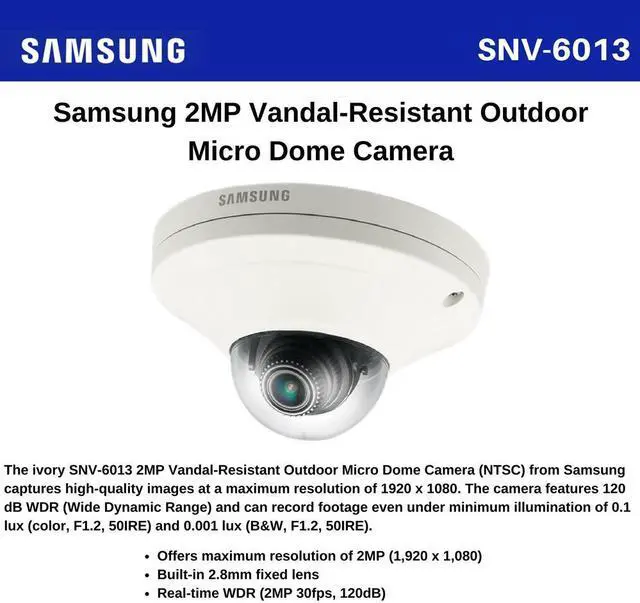 Dome Camera, Network, Fixed Lens, Voltage PoE, Width (In. ) 4-7/16, Height (In. ) 2-1/2, Focal Length (mm) 2.8, Min. Light Level (Lux) 0.3, Power Supply Not included, Power Consumption 7.5W, Interline Transfer (In. ) 1/3 CMOS, Board-In Type Mount, S/N Ratio (dB) 50, Progressive Scanning, 1952 (H) x 1116 (V) Pixels, Luminance Factor 0.3 lux, Illumination No, For Use With Video Surveillance