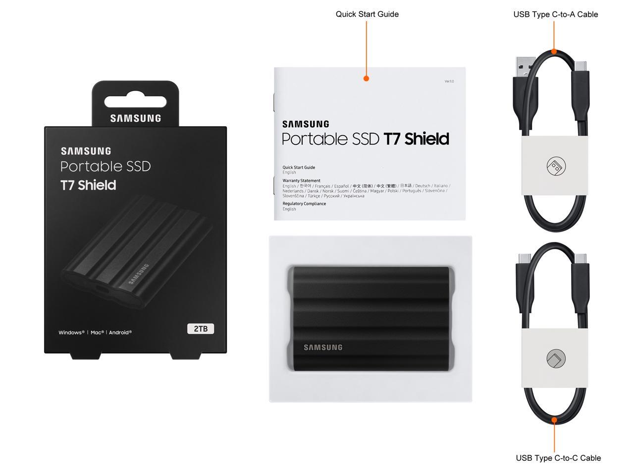 SAMSUNG T7 Shield 2TB, Portable SSD, up-to 1050MB/s, USB 3.2 Gen2, Rugged,IP65 Water & Dust Resistant, for Photographers, Content Creators and Gaming, Extenal Solid State Drive (MU-PE2T0S/AM), Black