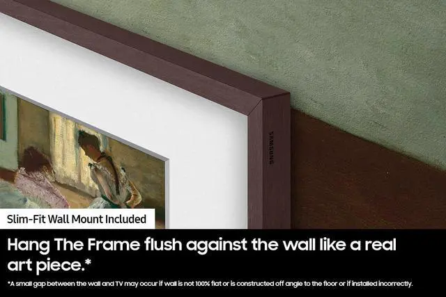 Samsung QN55LS03DDFXZA 55" - 2024 - Art Mode - Anti-Reflection with Matte Display - Customizable Frame - Slim-Fit Wall Mount included - Pantone Validated - Quantum HDR - 4K AI Upscaling - Wide Viewing Angle - Quantum Processor 4K - 100% Color Volume with Quantum Dot - Supreme UHD Dimming - Motion Xcelerator 120Hz - Real Depth Enhancer - Art Mode \ Samsung Art Store - Pantone Validated - Motion Sensor + Brightness Sensor - Auto Game Mode (ALLM) - Super Ultra Wide Game View and Game Bar - Modern Frame Design - One Invisible Connection - Samsung Tizen OS - Ambient Mode - Built-in Voice Assistant - Samsung Smart Hub - Samsung TV Plus - Multi View - Samsung Gaming Hub - Slim Fit Wall Mount - One Connect Box - Simple Stand - HDMI (4x) - USB (2x) - Built-in Wi-Fi 5 - Bluetooth 5.2 - Optical Audio Output Port - Dolby Atmos and Object Tracking Sound - Q-Symphony - Adaptive Sound Pro - ( 48.7" W x 29.3" H x 9" D) - (Black)