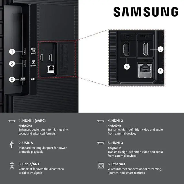 Smart Assistants (Built-In): (Bixby, Alexa) - Works with (Google Assistant) - Works with Apple Airplay and Google Cast - Gaming Hub - Cloud Gaming - VESA 200mm x 200mm - ( 37.7" W x 24" H x 6.2" D) - (Titan Gray) with a 1 Year Amber Protection in Addition to the Included Full 1 Year Manufacturer Warranty. Intended for Residential Use Only and Amber Protection HDTV Screen Cleaner - 200ml Liquid Spray - 6.8 oz Screen Cleaner - Includes 200 x 200mm Polar Fleece Cloth - (9"W x 3"D x 5"H) - (Black)
