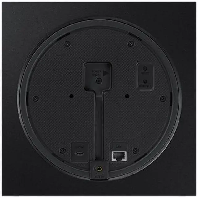 Bring studio sound to your space Samsung Hi-Fi Speakers tuned by AKG Experience studio-quality sound in your own space. Listen to crisp hi-fi sound, fine-tuned and certified by AKG. Let the original sound come alive UHQ 32bit Upscaling Transform your music to a more detailed and dynamic sound. Upscale any of your music files up to 32bit for richer sound. Feel the deep bass Distortion Cancelling Technology Distortion Cancelling technology predicts and cancels out distortion before it happens, giving you deeper and more detailed bass without the need for a separate subwoofer. Moving Dial Control goes where you go? Moving Dial Control Just rotate and click. Or use your voice. With the Moving Dial Control, you can adjust the volume, skip songs, and use voice...Features: Deep BassFeatures: Voice CommandFeatures: Hands-freeFeatures: Wireless PairingFeatures: Bluetooth PairingFeatures: Wireless Audio StreamFeatures: Advanced Audio Coding (AAC)Features: Remote ControlVirtual Assistant Supported: AlexaSpeaker Configuration: 2.0Wireless Speaker(s): YesWireless LAN: YesBluetooth: YesNetwork (RJ-45): YesPower Source: AC AdapterColor: BlackHeight: 8.3Width: 8.3"Depth: 2.8"Weight (Approximate): 4.62 lbPackage Contents: 55W Wireless Hi-Fi Speaker VL350 Remote Control Aux Cable 3.5mm Power Cable Compatibility: Mobile Devices Smart Home Appliances Package Contents 55W Wireless Hi-Fi Speaker VL350 Remote Control Aux Cable 3.5mm Power Cable "