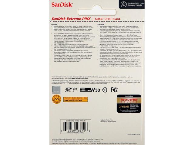 SanDisk Extreme PRO 128 GB Class 3/UHS-I U3 V30 SDXC SDSDXXD128GANCIN