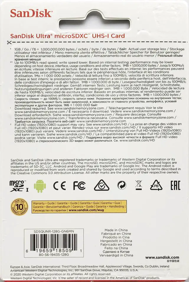 SanDisk 128GB microSDXC Ultra 100MB/s C10 UHS-I 128G microSD Class 10 microSD micro SD SDXC SDSQUNS-128G Flash Memory Card