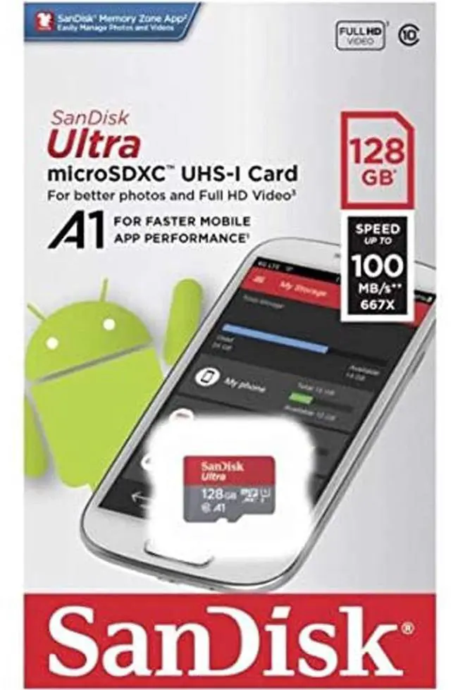 SanDisk SDSQUAR-128G-GN6MN DCM 128GB 8p MSDXC r100MB/s 667x Class 10 A1 UHS-I U1 SanDisk Ultra Micro Secure Digital Extended Capacity Card w/o Adapter