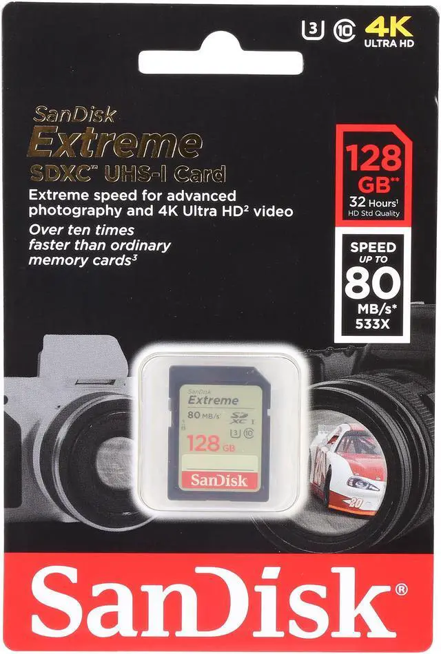SanDisk Extreme 128GB Secure Digital Extended Capacity (SDXC) Flash Card - Global Model SDSDXN-128G-G46