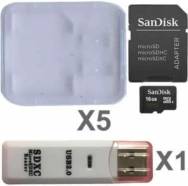 SanDisk Kit of Qty 5 x Sandisk 16GB mSDHC SDSDQAB-016G Card with SD Adapters, Plastic Cases and 1 USB Reader