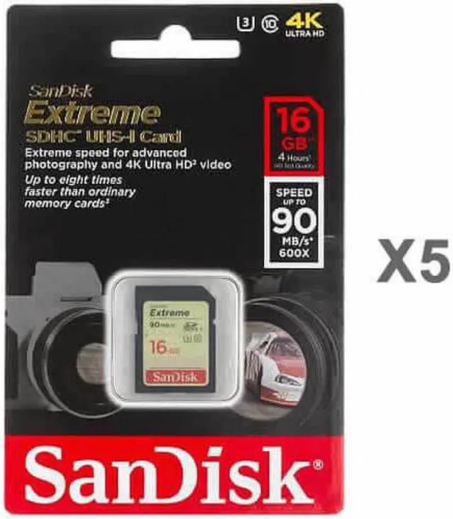SanDisk Kit of Qty 5 x Sandisk Extreme 16GB SDHC SDSDXNE-016G-GNCIN Card