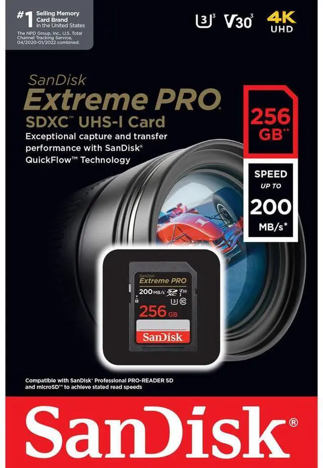 SanDisk Extreme PRO 256 GB Class 3/UHS-I U3 V30 SDXC SDSDXXD256GANCIN