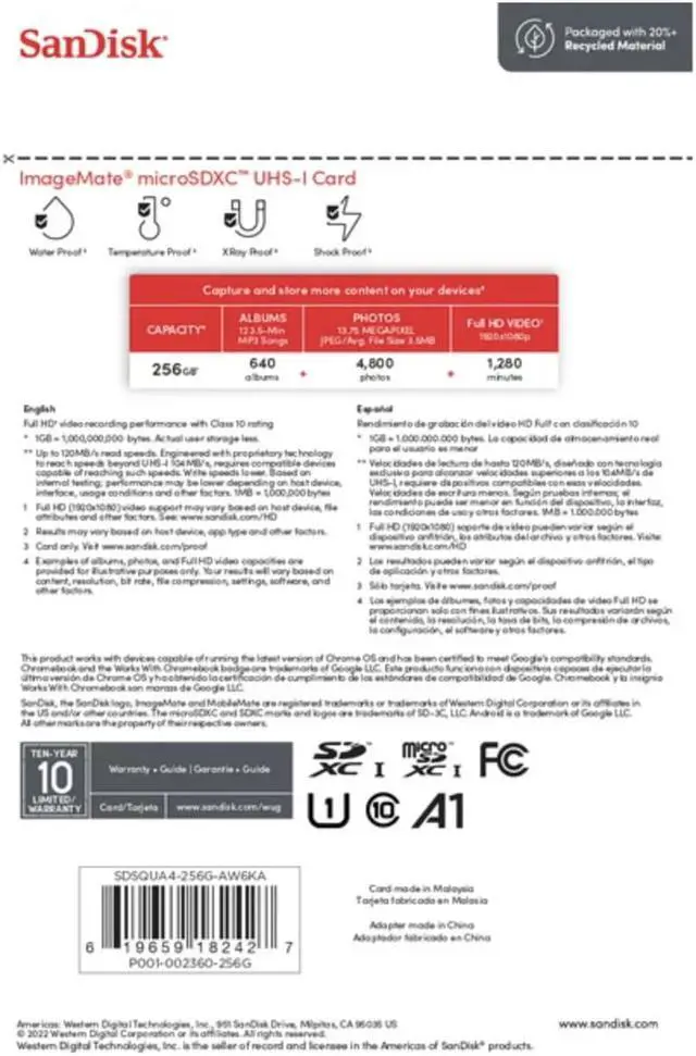 Rated A1, the SanDisk ImageMate® microSD card is optimized for apps, delivering faster app launch and performance to provide a better smartphone experience.