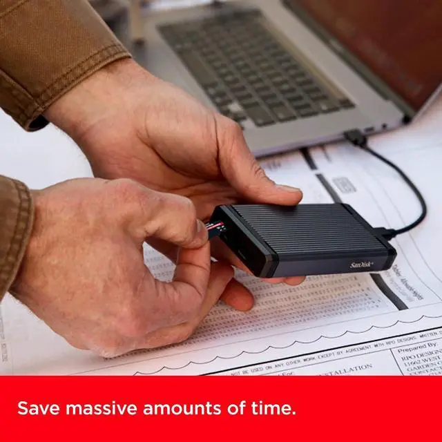 MASSIVE TIME-SAVER. Transfer 60 minutes of 4K UHD video shot at 30 fps in just less than 70 seconds and 1,000 10MP RAW photos in less than a minute (51.7 seconds) when paired with SanDisk PRO-READER SD Express Dual Card (sold separately).