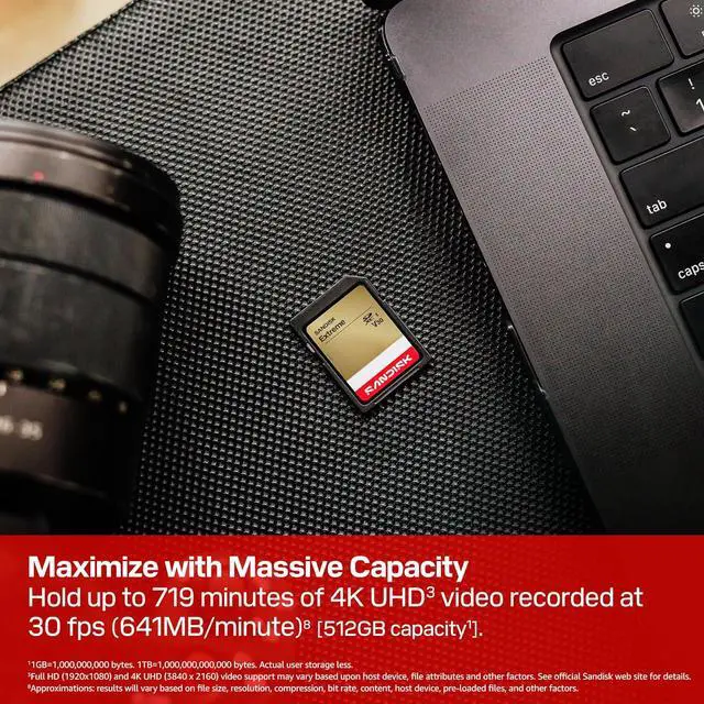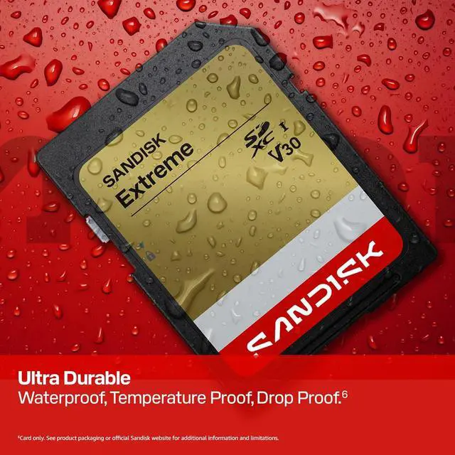 | Features | * CAPTURE LARGER THAN LIFE. Unlock picturesque 4K UHD brilliance and pristine high res stills with video speed class ratings of U3 and V30. * SPEED BARRIERS SHATTERED. Save precious moments with blazing read speeds up to 230MB/s and write speeds up to 160MB/s [256GB-512GB capacities] * MAXIMIZE WITH MASSIVE CAPACITY. Capture for longer and store more with up to 512GB of storage that can hold up to 719 minutes of 4K UHD video recorded at 30 fps (641MB/minute). * DEFY THE ELEMENTS. Unrelentingly resilient, SANDISK® SD memory cards are engineered to perform in extreme conditions, despite rough handling and constant use. * CONTENT MANAGEMENT, SIMPLIFIED. Back up, organize, and transfer easily with the SANDISK® Memory Zone desktop app, whether you use an SD card slot or a card reader. * BUILT TO LAST. AND LAST. Backed by a lifetime limited warranty, SANDISK® branded cards perform over the long haul. |