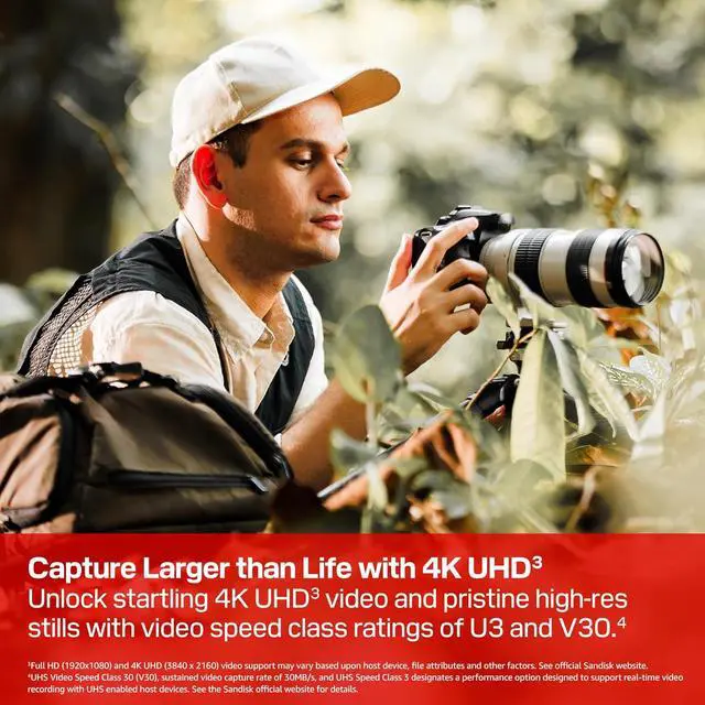 This technology shatters previous speed barriers, allowing you to offload media in seconds and streamline your creative process. Unlock the potential of lifelike 4K UHD and high-resolution stills with video speed class ratings of U3 and V30. Capture every detail with flawless frame-by-frame precision in continuous burst mode, and freeze fleeting moments in slow-motion Full HD to unleash your artistic vision. Maximize your storage capabilities with this card's massive 2TB capacity. Store up to 47, 368 24MP RAW photos, 2, 808 minutes of 4K UHD video at 30 fps, or 4, 147 minutes of slow-motion Full HD video at 240 fps.