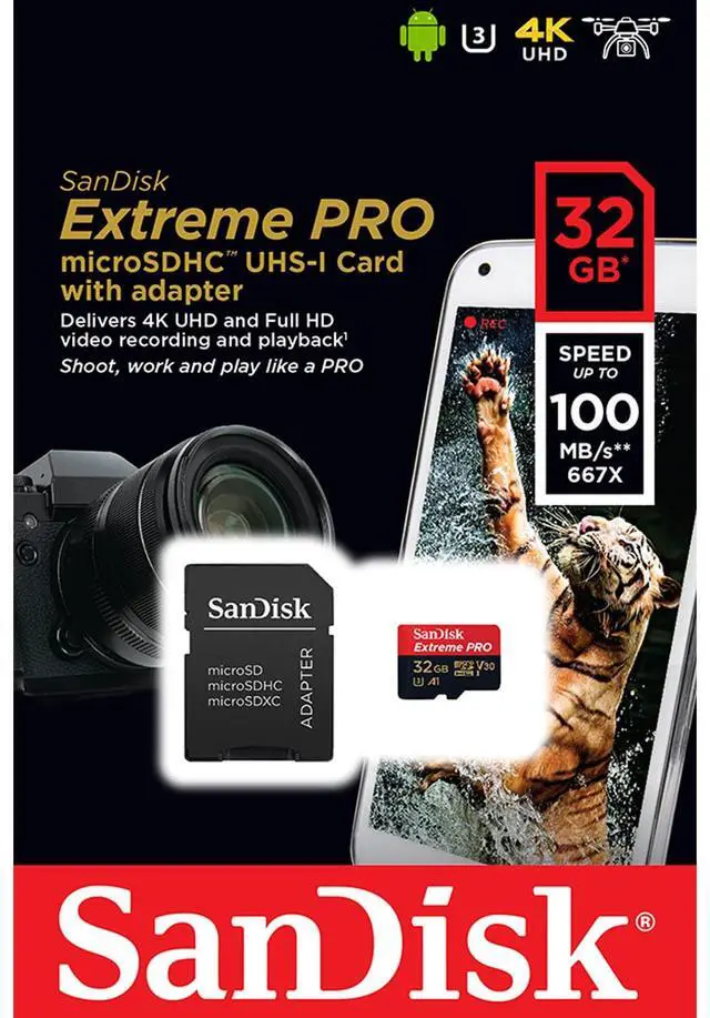 Sandisk A1 32GB Extreme PRO micro SDHC Card + Adapter 100MB/s V30 UHS-I U3