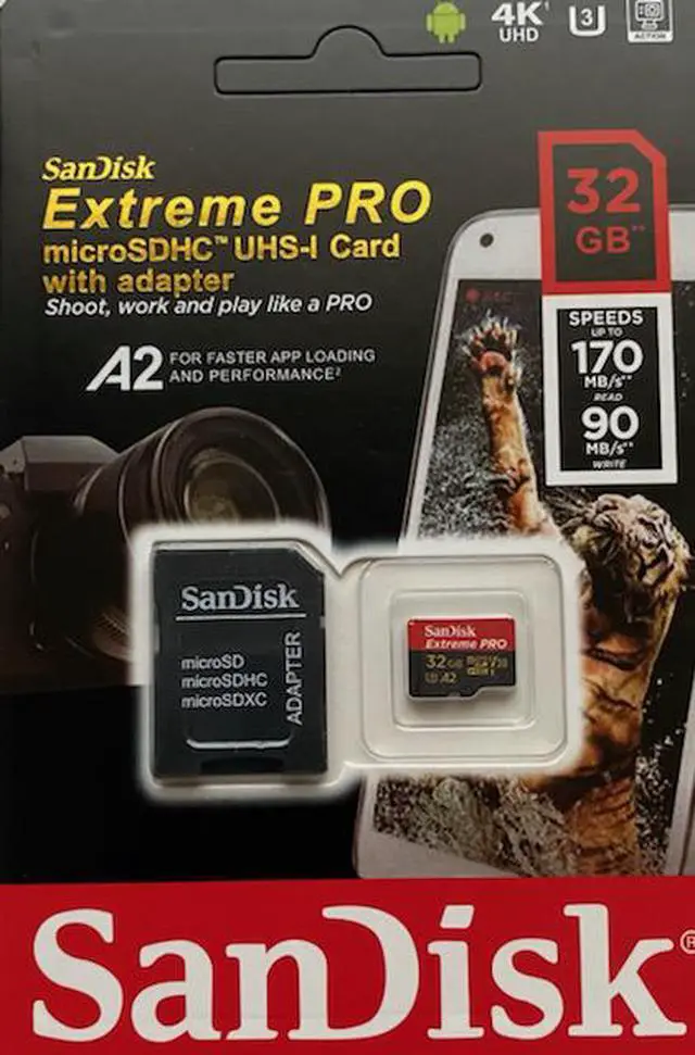 Get extreme speeds for fast transfer, app performance, and 4K UHD. Ideal for your Android™ smartphone, action cameras or drones, this high-performance microSD card does 4K UHD video recording, Full HD video and high-resolution photos. The super-fast SanDisk Extreme® PRO microSDXC™ memory card reads up to 170MB/s* and writes up to 90MB/s. * Plus, it’s A2-rated, so you can get fast application performance for an exceptional smartphone experience. Save Time Transferring Content Quick read speeds of up to 170MB/s* let you transfer 1000 high-resolution photos and 30 minutes of 4K video (24GB) in less than 3 minutes.