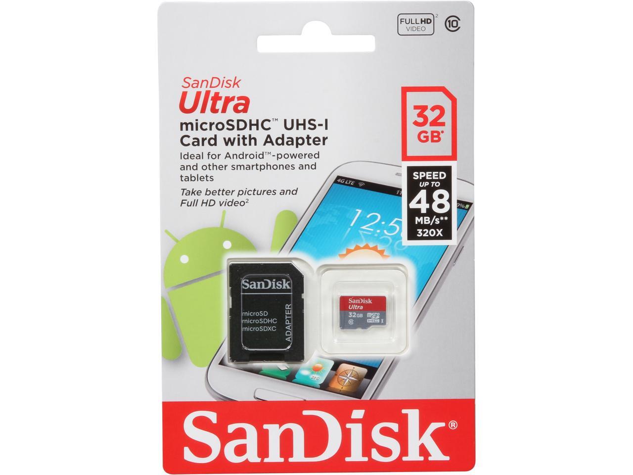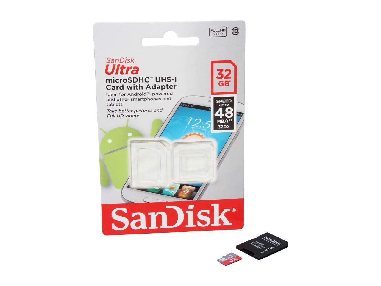 SanDisk Ultra 32GB microSDHC Flash Card with adapter – Global Model SDSDQUAN-032G-G4A