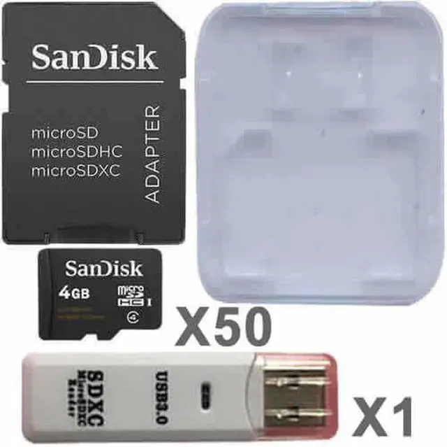 SanDisk Kit of Qty 50 x SanDisk 4GB microSDHC SDSDQAB-004G with Adapters, Cases, 1 USB Reader