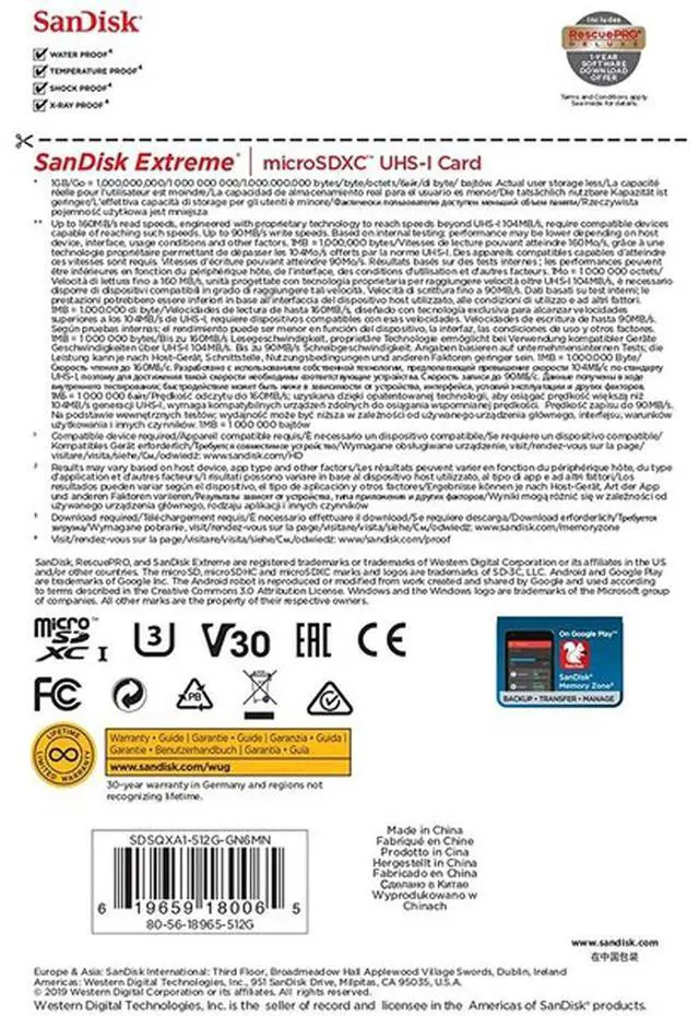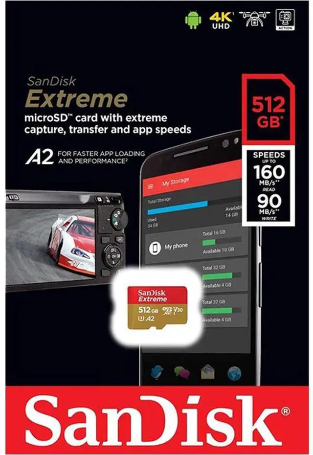 SanDisk SDSQXA1-512G-GN6MN MAS 512GB 8pin microSDXC r160MB/s w90MB/s C10 U3 V30 A2 UHS-I SanDisk Extreme microSDXC Memory Card w/o Adapter