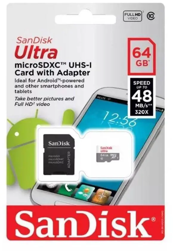 SanDisk 64GB Ultra microSDXC Memory Card, UHS-I Class 10, with SD Adapter