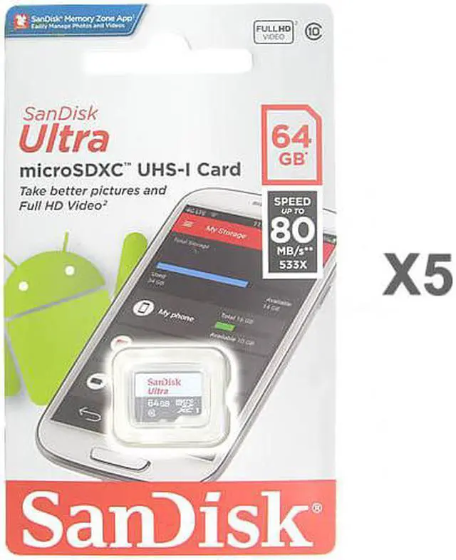 SanDisk Kit of Qty 5 x SanDisk Ultra 64GB microSDXC SDSQUNS-064G-GN3MN