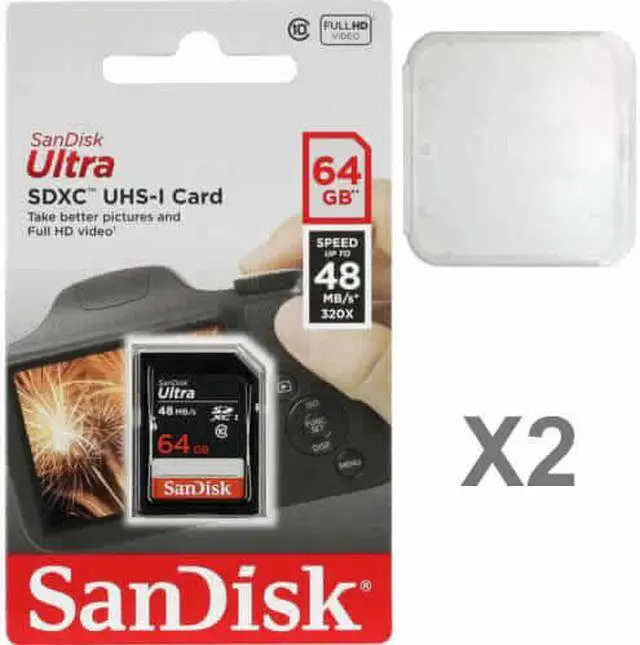 SanDisk Kit of Qty 2 x Sandisk Ultra 64GB SDXC SDSDUNB-064G-GN3IN with Plastic Cases