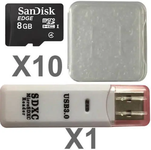 SanDisk 8GB MicroSD Class 4 UHS-1 SDSDQAB-008G Micro SDHC Card (10 Pack) with Plastic Cases and 1 Reader