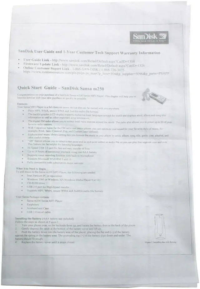 The Sansa m200 Series MP3 players add to SanDisk's growing line of products for the audio market. Created by the leaders in flash memory, this flash-based model provides high-quality digital music playback at an affordable price. As a replacement to SanDisk original Digital Audio Player line, this improved look also includes Sansa's excellent navigation: songs sorted by title, artist, album, genre as well as play list support. The Sansa m200 Series MP3 players are one of the first to provide Microsoft PlaysForSure Subscription support.