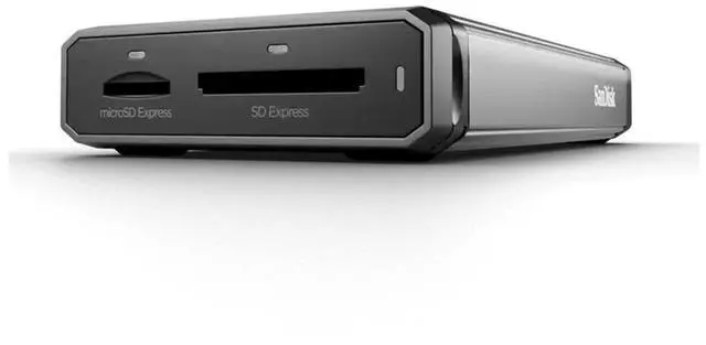 | Features | TOP-TIER. Our fastest SD Express card reader on the market for today's high quality Full HD, 4K and 5.3K video recording, high-end photography and more. DUAL SLOT. Features the convenience of 1 SD Express slot and 1 microSD Express slot. EASY PORTABILITY. Works as a standalone portable reader for accelerated offloading. PRO-DOCK 4 READY. Compatible with the SanDisk Professional PRO-DOCK 4 for simultaneous offloads, editing, and archiving. BACKWARDS COMPATIBLE. Supports SD and microSD UHS-I cards. |