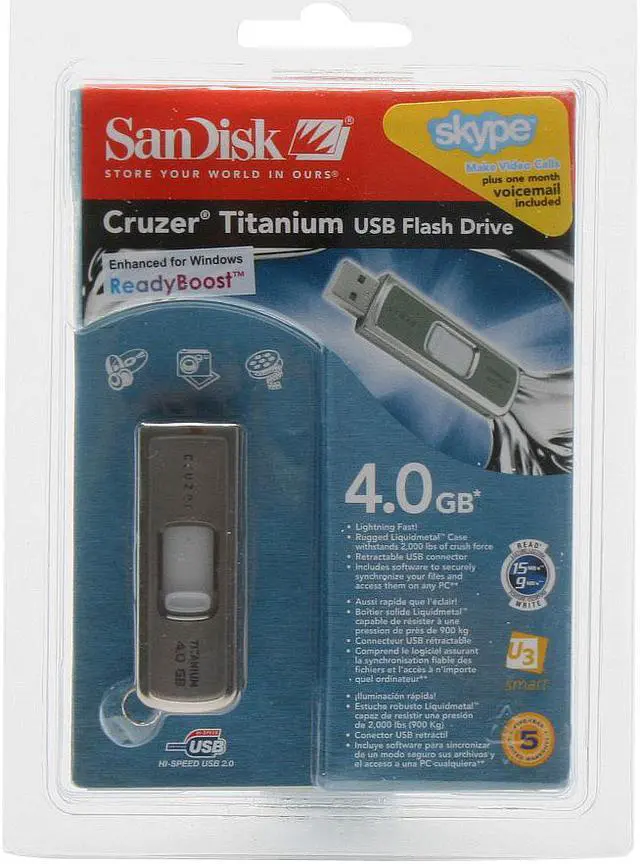 SanDisk Titanium 4GB Flash Drive (USB2.0 Portable) SDCZ7-4096-A10RB