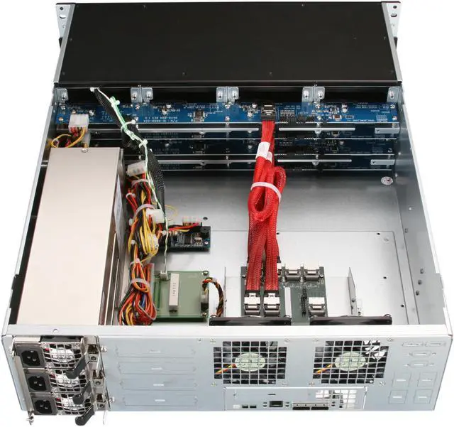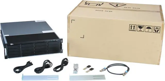 | Features | Form Factor: 3U Rackmount Maximum Capacity: 48TB, Expandable to 360TB Supported RAID Controller: Areca ARC-1880X LSI SAS MegaRAID Dell Perc SAS RAID Intel SAS RAID ATTO SAS RAID Host Interface: 6G SAS Expander, Mini-SAS / SFF-8088 x 1 Expansion Ports: Mini-SAS / SFF-8088 x 1 (Up to 5 units supported) Cooling Fan: 4" Cooling fan * 2, 2" Cooling fan * 2 from Power Supply Controller Interface: Via RAID Controller Status Indicators: Hard Drive & Failure LEDs |