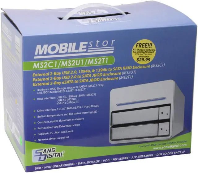 | Features | JBOD mode for customizable configuration. Dual eSATA channel for ultimate performance and flexibility. Removable trays for fast access of additional hard drives and easy trouble shooting. Temperature and fan failure detector with purple LED warning light. Operation System Independent with plug and play capability. |