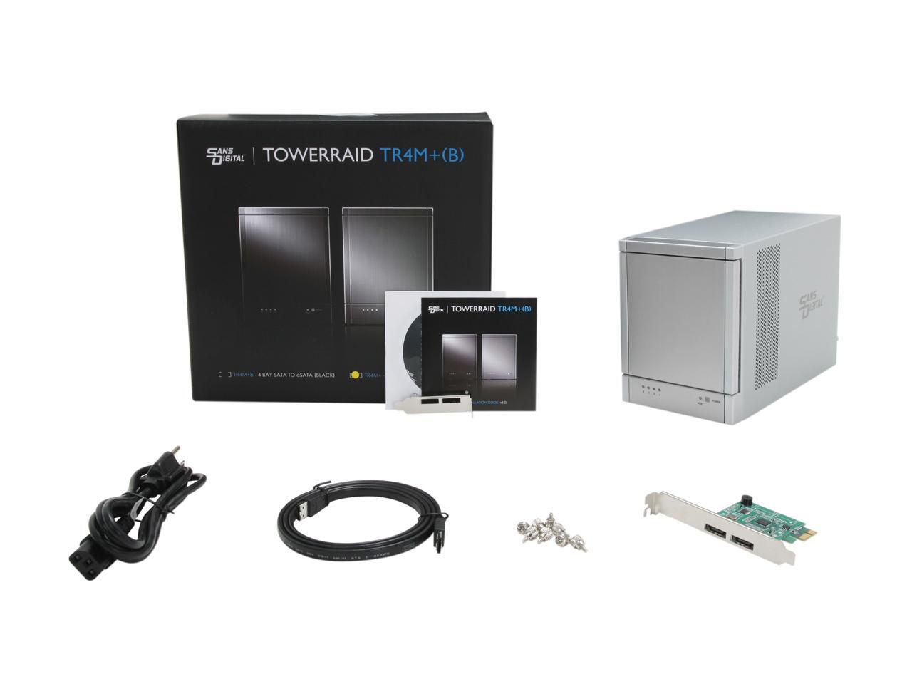 Sans Digital 4-Bay eSATA RAID 0/1/10/5/JBOD Tower Storage Enclosure w/ 6G PCIe Card TR4M+ (Silver)